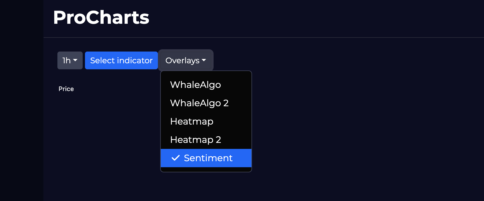 You can open the “Pro charts” on Whaleportal and click the overlays dropdown and select Sentiment. If you combine this with the heatmap you should make to know which colours are for the sentiment and which ons for the regular heatmap. Sentiment colours are always below the candle.